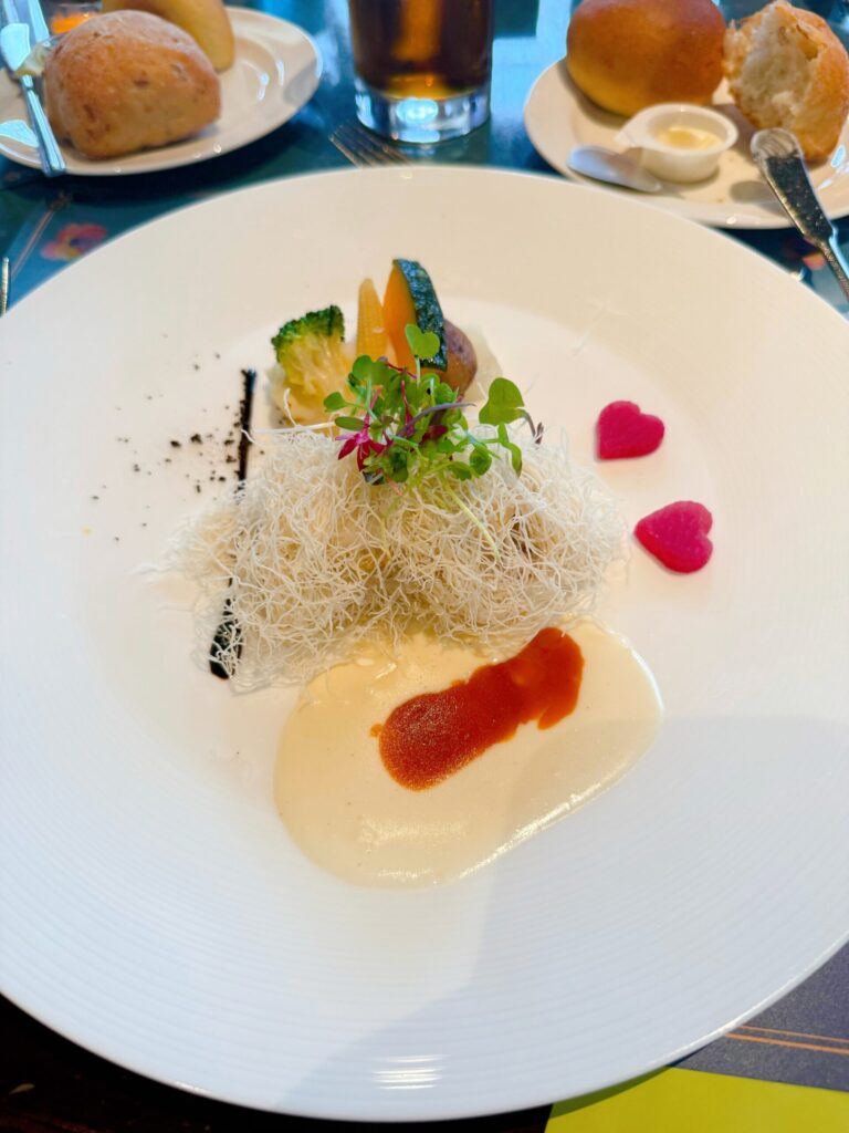 イメージは結婚式の料理みたいな感じ。肉料理あまり期待しちゃいけない気がする…